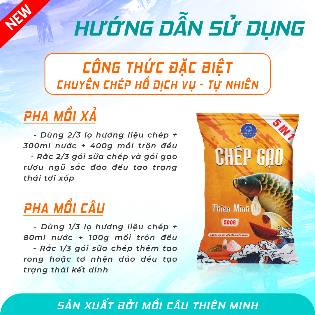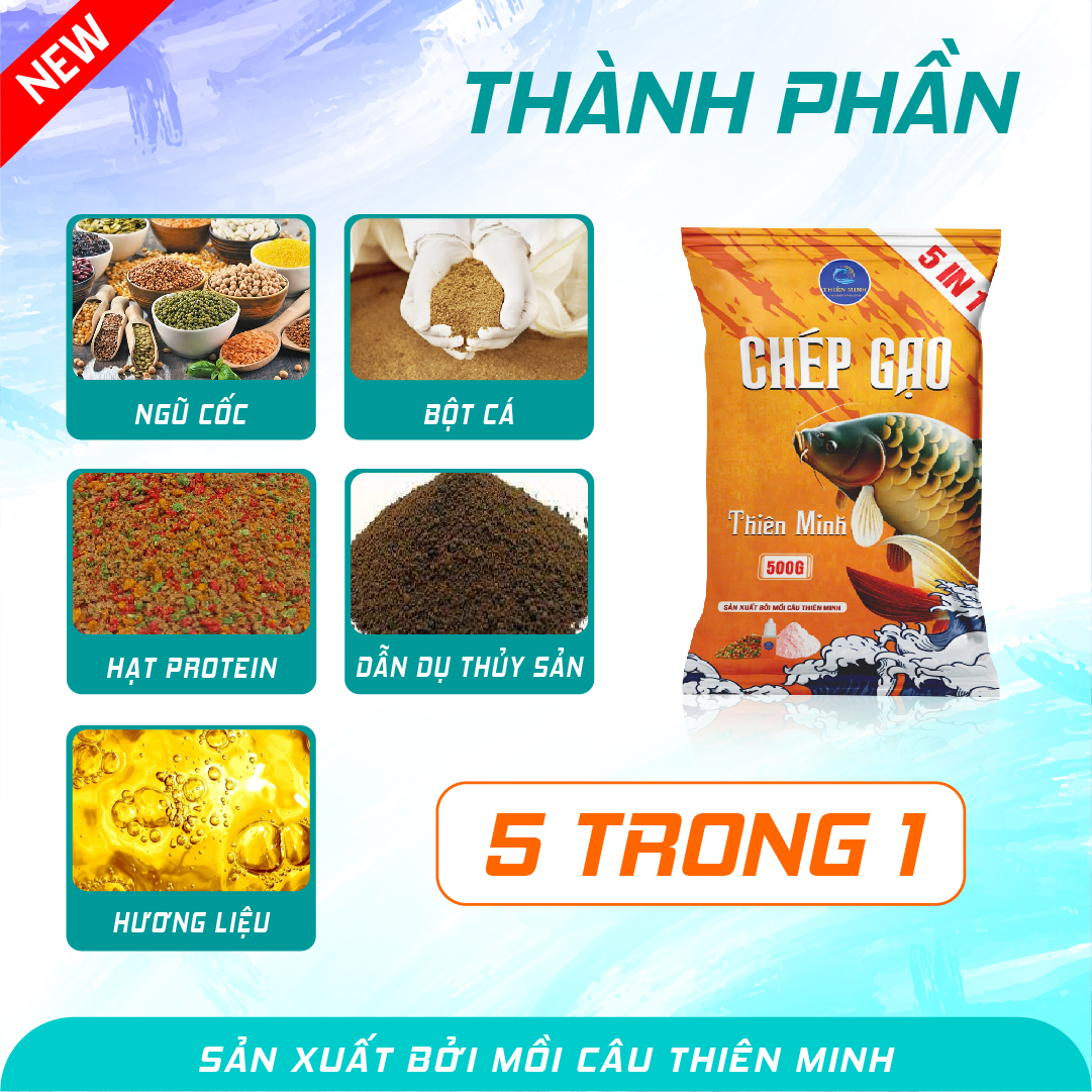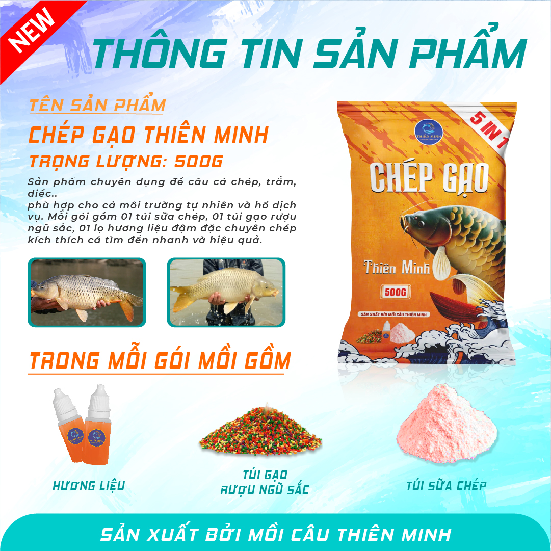 Nếu bạn là cần thủ đam mê dòng cá chép, chắc hẳn hiểu rằng mồi câu phù hợp quyết định đến 80% thành công của buổi câu. Và đó chính là lý do Chép Gạo Thiên Minh 5in1 ra đời – dòng mồi câu chuyên biệt được nghiên cứu dành riêng cho cá chép hồ dịch vụ và cá chép tự nhiên.